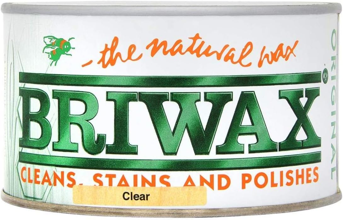 Briwax Clear - 400g https://geni.us/dAWZDh (USA) 5l https://geni.us/2fj8isk (Amazon Affiliate Links)