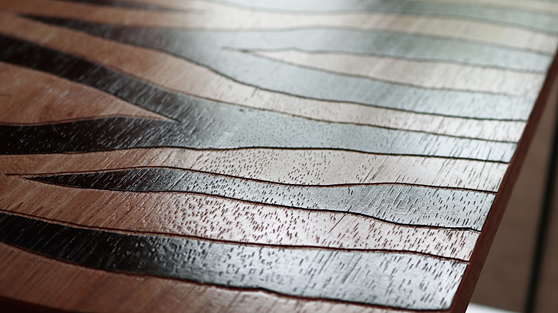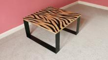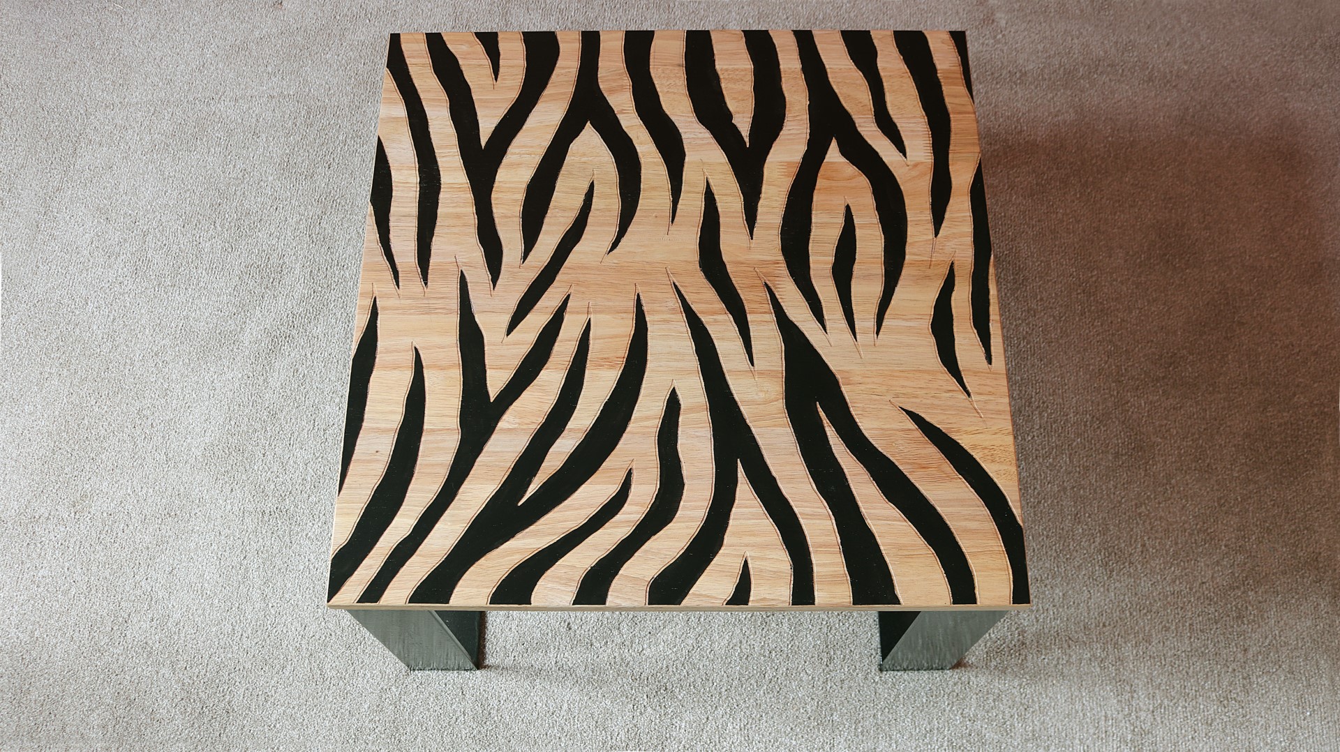 In this video I use a salvaged rubberwood hardwood dining table top to make two coffee tables with metal legs. One with an animal print design (could be tiger print, could be zebra print) engraved in to the top, and one plain, and I used some reclaimed metal legs for the base.