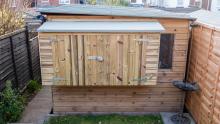 I fitted the doors using these galvanised hinges and some of these security screws to ensure that no unwanted visitors armed with a screwdriver would be able to get in to it.