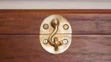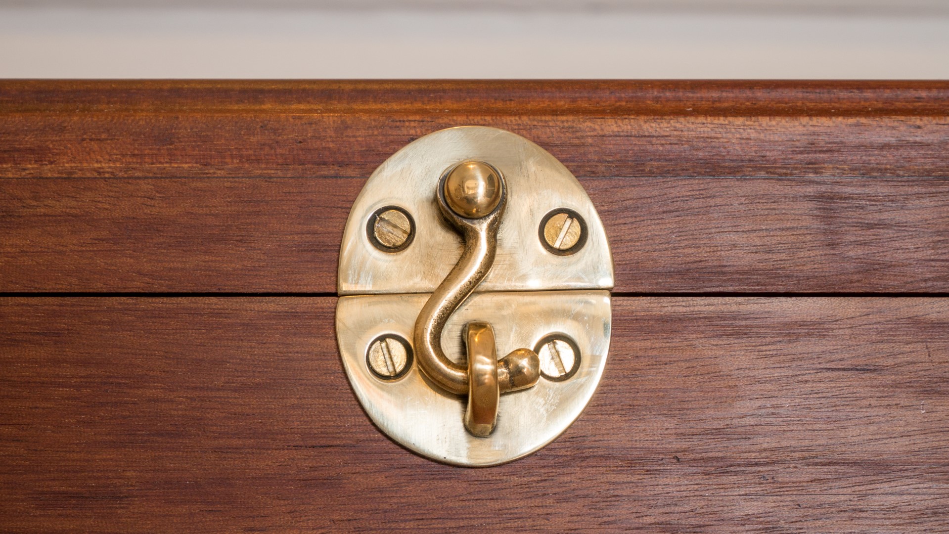 I had some difficulties finding a good quality brass latch that was the right style - I bought many different ones and none of them looked right.  Eventually I found one on Etsy that was nice but needed some adjustments as it was too big and not shiny enough.