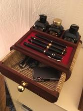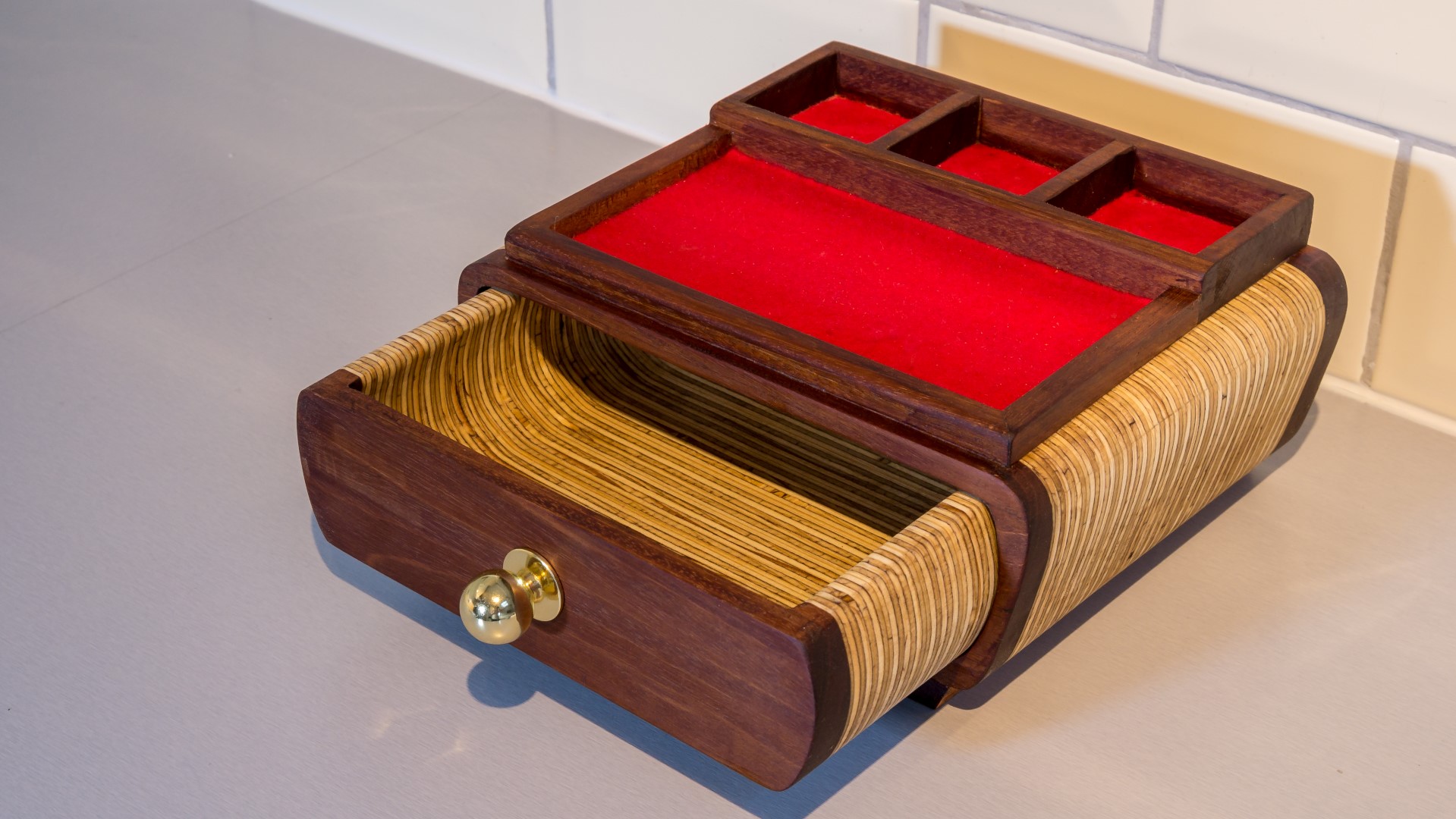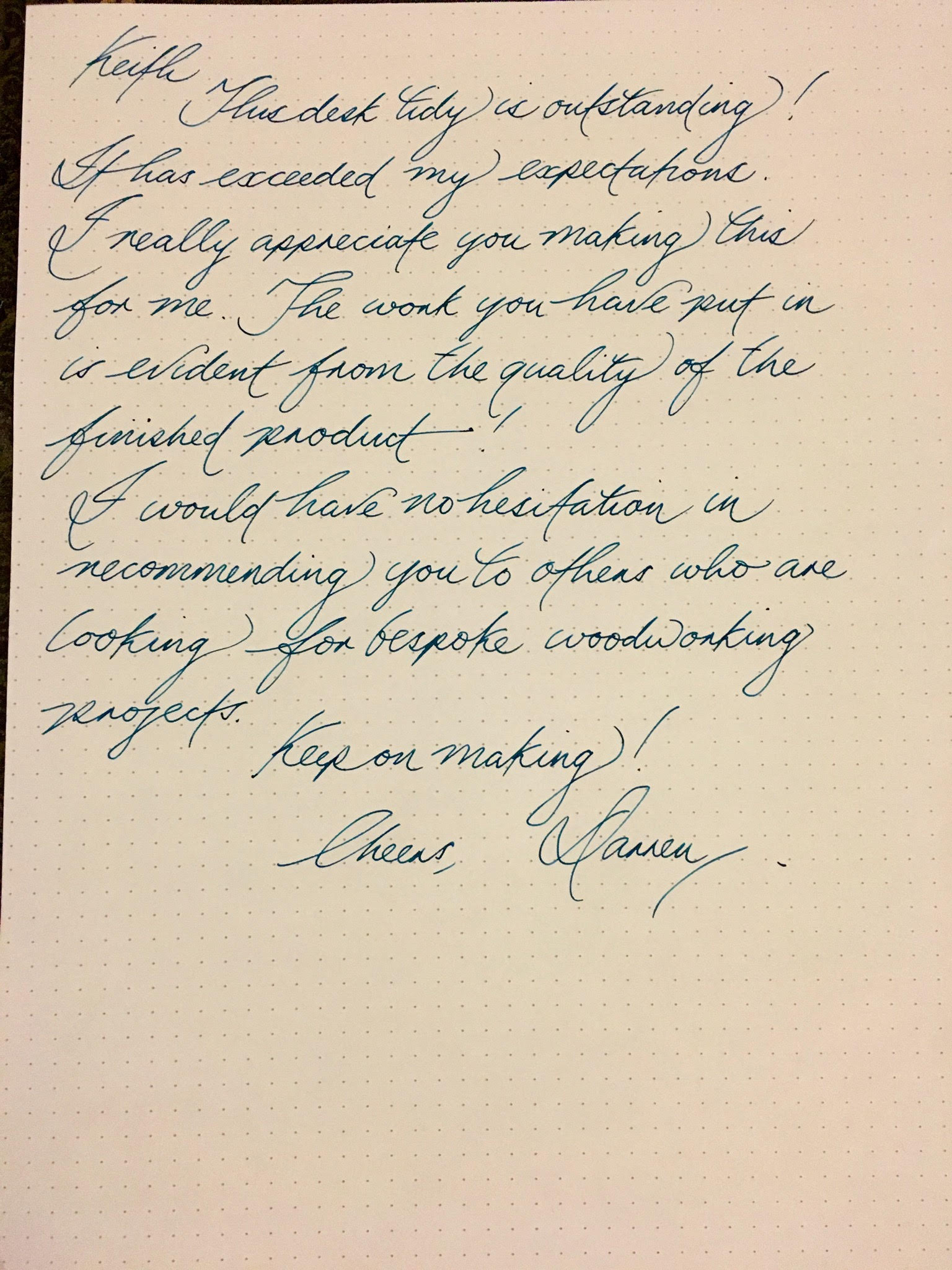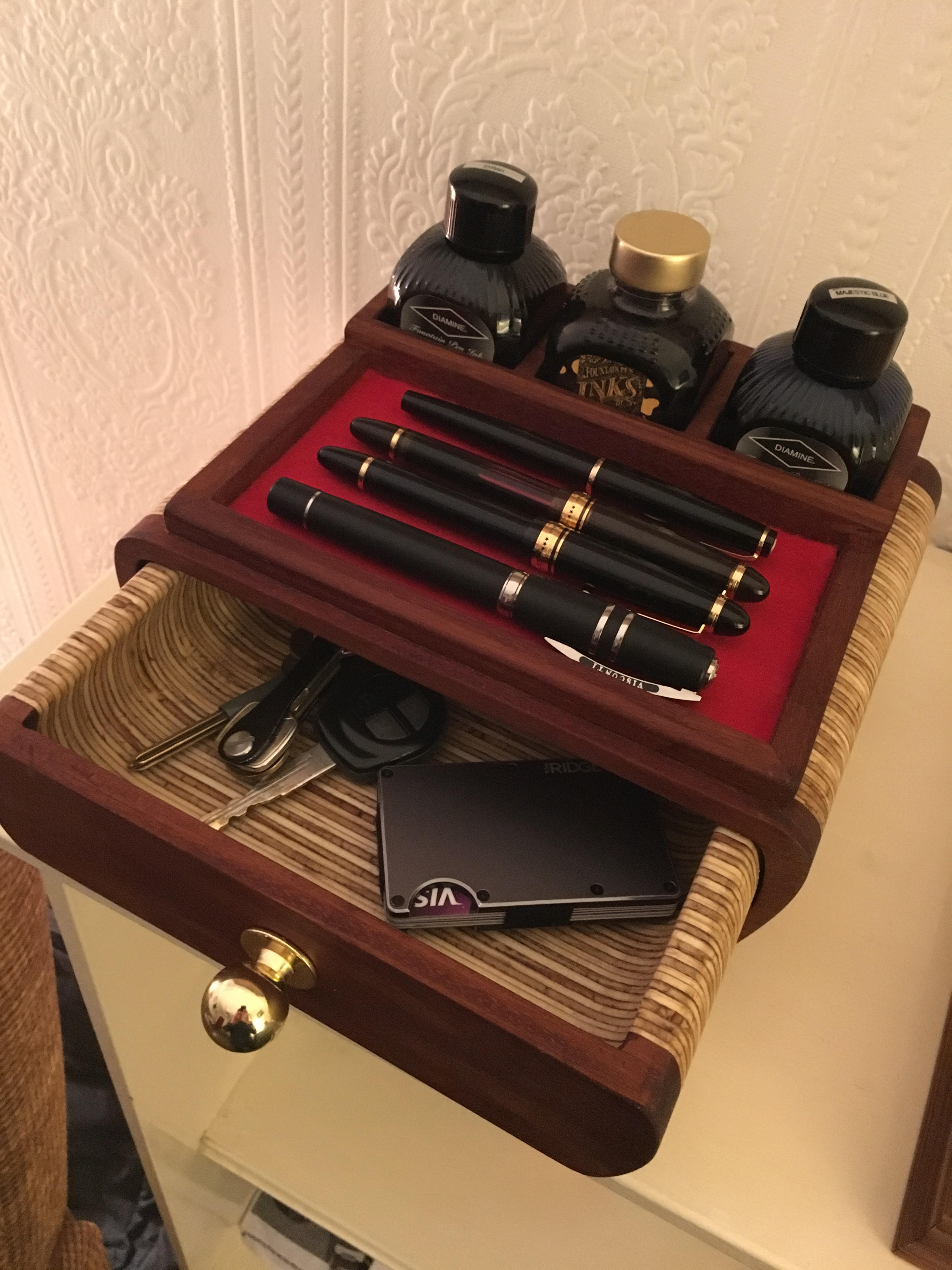 Recently one of my YouTube viewers got in touch about a commission. He was looking for a desk tidy to hold some bottles of ink, and some pens with a drawer where he could put his phone, wallet and keys.
