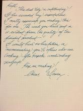 The client was happy with the design, and he sent me one of his ink bottles for reference to get the sizing right, and also this beautifully handwritten letter.