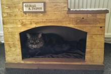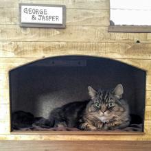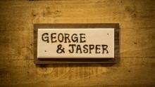 Finally, I made a sign saying "George & Jasper" using a wood burning iron on a piece of spruce.  This was mounted to a piece of sapele to create a border.
