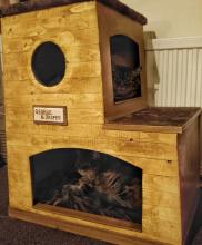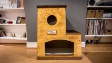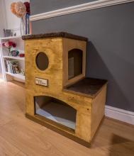 The cat house was a really fun project, and it was very inexpensive to make as basically everything was scrap material (apart from the sisal rope and fur throw)..
