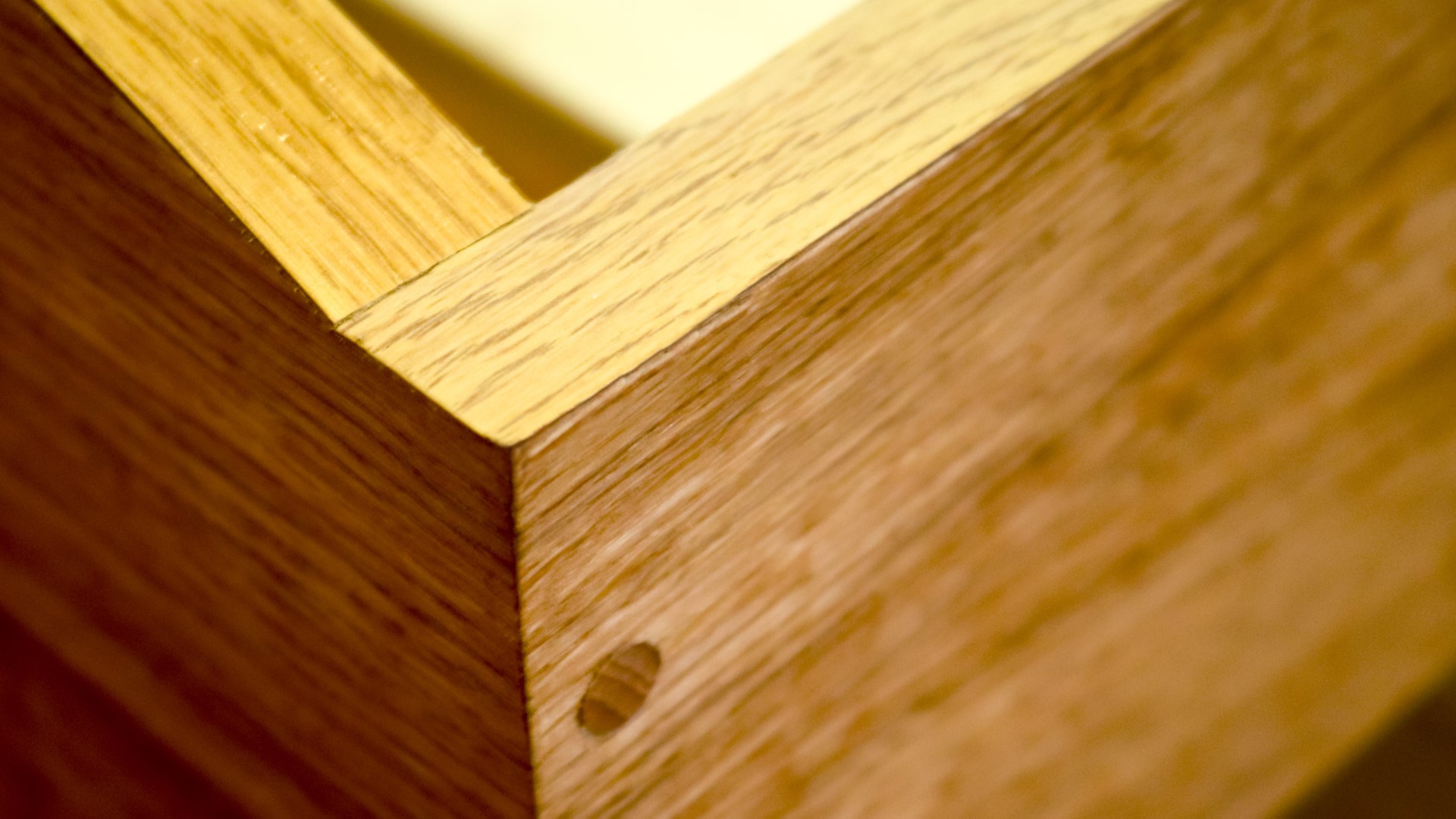 And for the side and back panels I cut mitre joints at the corners using a chisel
