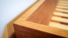 The client wanted oak trim and feet to match the panels of the bed, so while I was waiting for the glue to dry, I started looking through the oak I had, and I thought I had the perfect piece at the bottom of the shelf that I could just rip in to strips to use as edge banding. But after measuring the thickness of the panels at 19mm I found that it wasn't quite thick enough by 1mm.