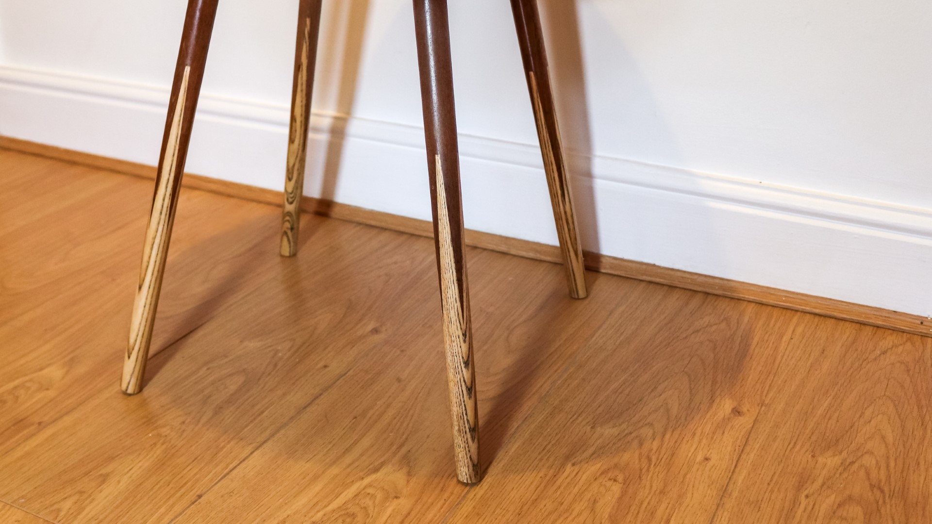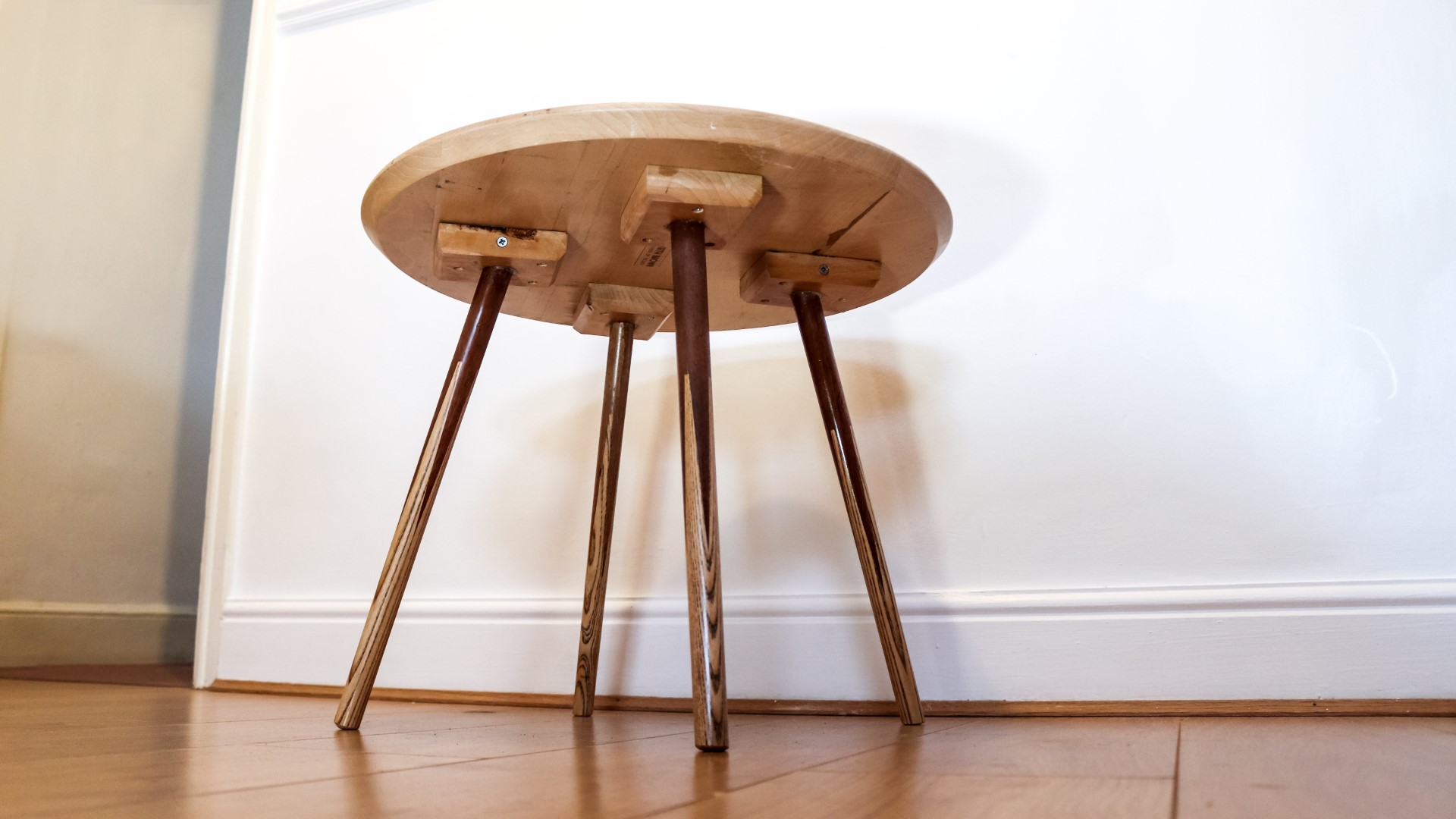 And then by placing some course sandpaper beneath the longest two legs, I could remove any wobble.