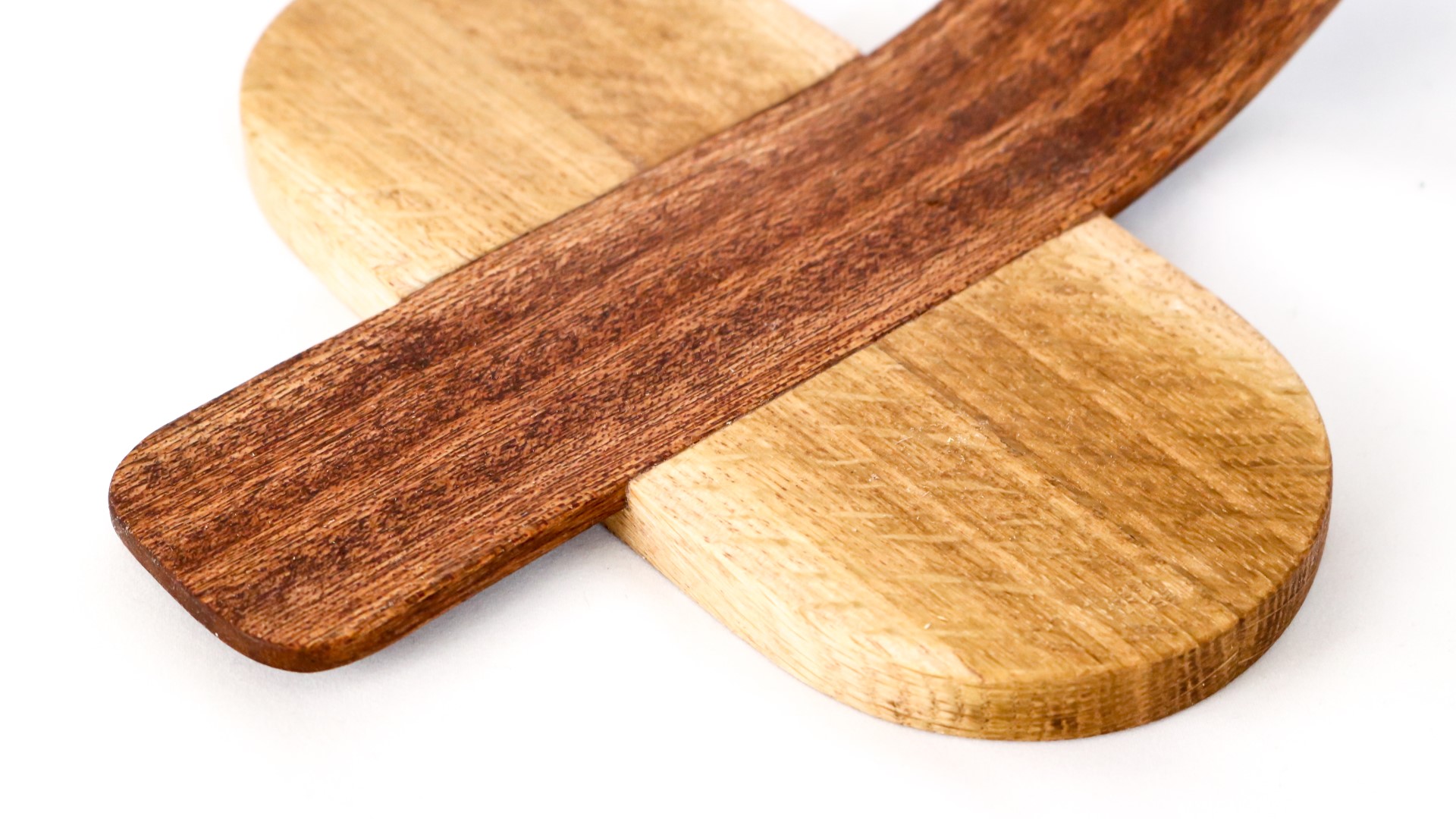 I really like the way that the stain popped the grain and added more contrast to the laminated part against the oak.