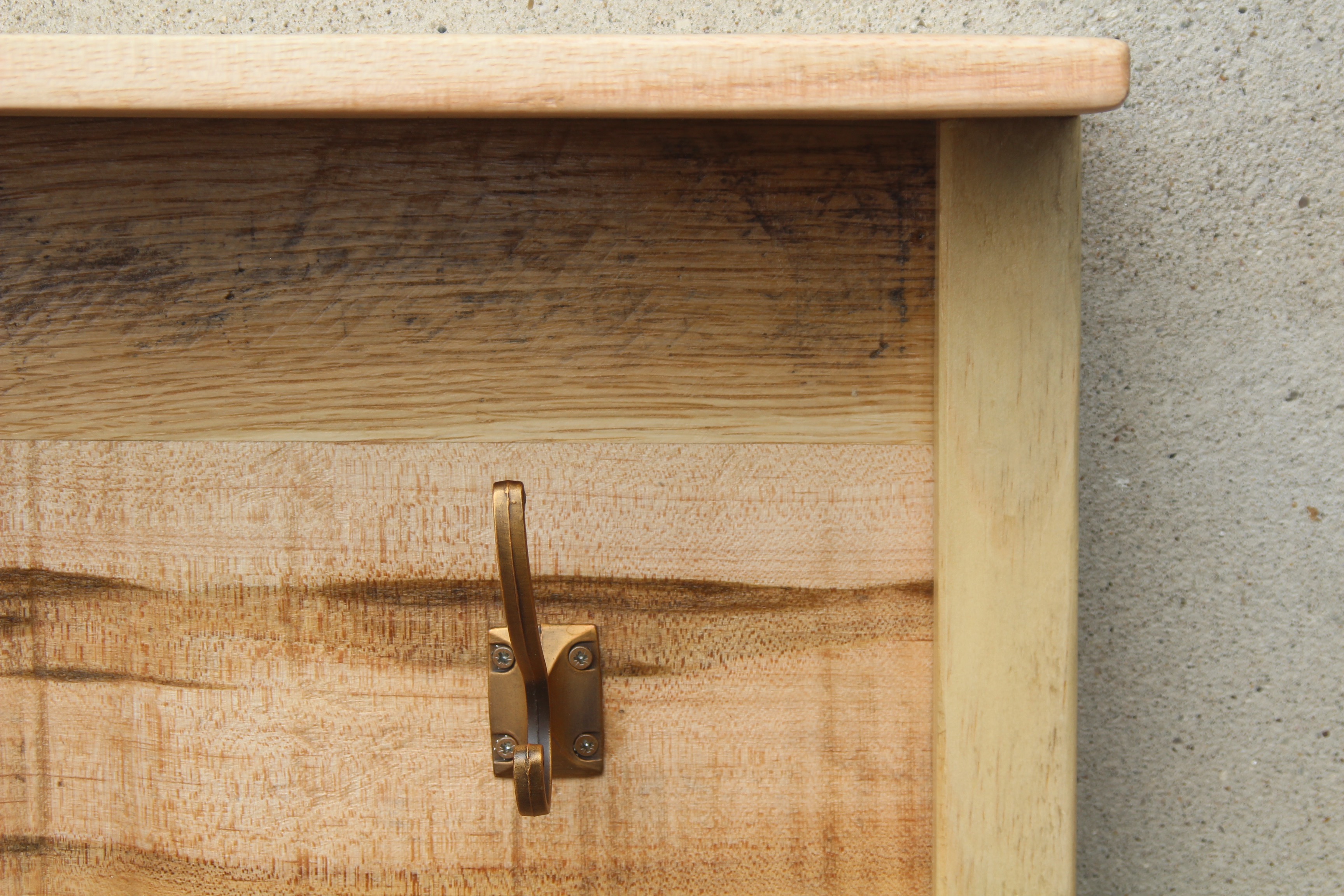 I have a couple of recent projects I'd like to contribute to your site, if that's cool? A coat rack, and a breakfast tray. There are two mini french cleats for hanging which sit level with the vertical cleats. It should appear as if floating once up. I did all the planing/edge jointing by hand and for the 60 degree bevels on the hexatray I had to build a dedicated jig since my blade doesn't tilt and I don't have a mitre gauge. "