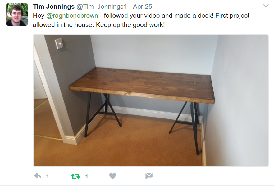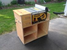 Chris writes "I have followed you on YouTube for some time now and really like your work. I admire how you focus on building something new from older and used materials. Last year I got myself the same DeWalt portable table saw you have and quickly realized in needed a proper mobile and safe cart or stand for it. I don't have proper workshop. I have to roll or carry everything out from my shed when I want to do some wood working. I saw what you had made for your saw and realized I needed to build the very same thing. This past weekend I buil my version of the rag 'n bone table saw cart. I have attached a photo for you and for your website. I must confess I used 75% new material (plywood) and 25% scrap wood. Like you, I did make it a little taller than my mobile work bench (not in photo) which serves as an outfeed table"